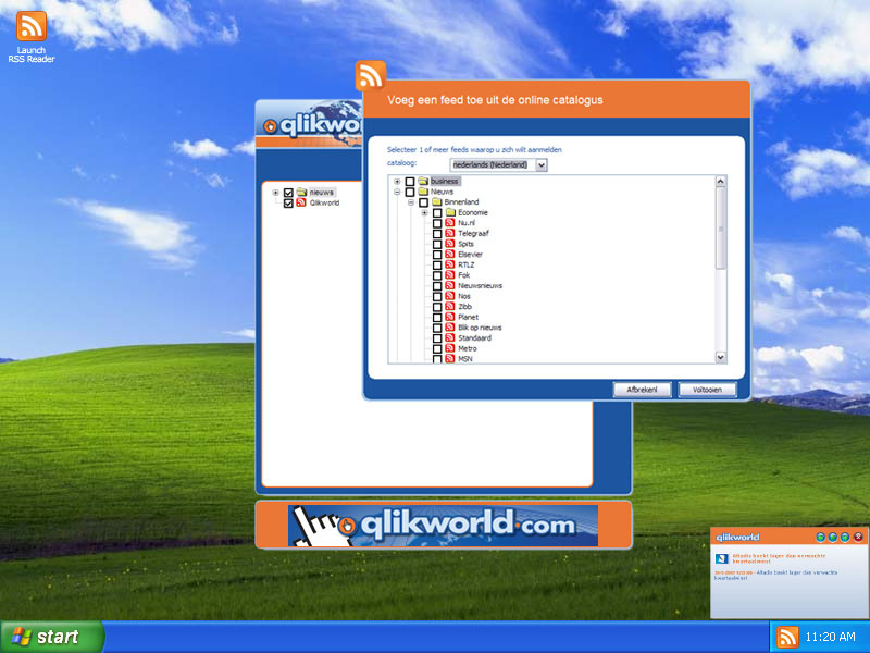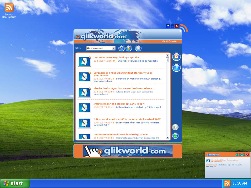 The Qlikworld Reader is more than just a standard RSS reader. It is still possible to add and manage RSS feeds, but the reader also gives access to a big offering of other media : news, job offerings, movies, pictures and audio files. By adding RSS feeds and using the easy-to-use search function (Which saves search entries en keeps them up to date) the user can merge the information and media in which he is interested into one program.